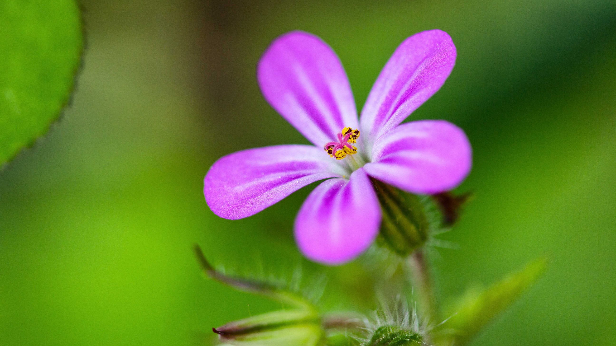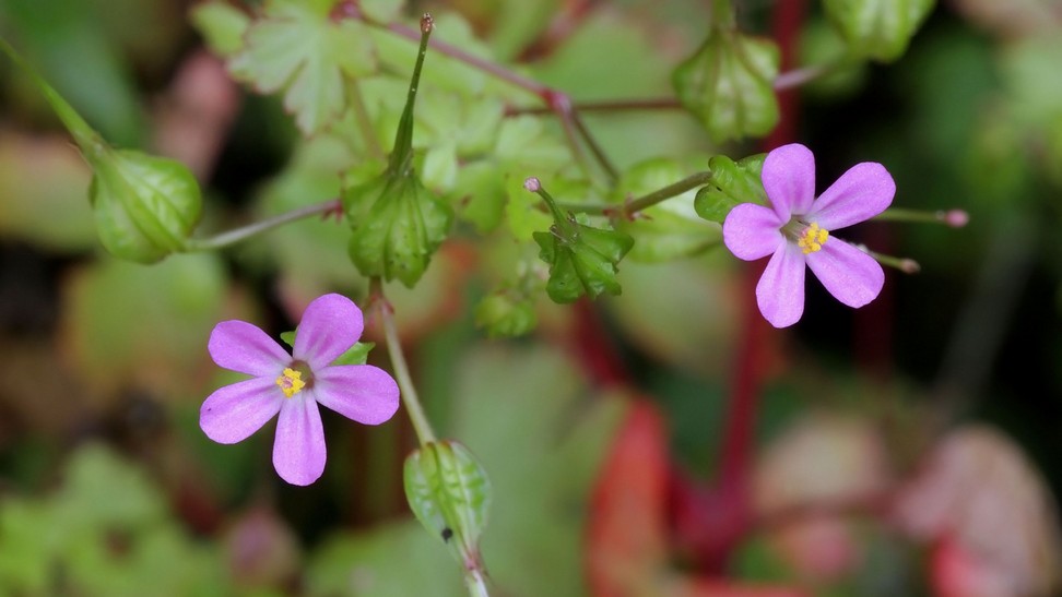 Geranium lucidum, de nome comum Gerânio, é uma planta que se desenvolve em habitats rupícolas, ruderais e relvados húmidos, com época de floração entre abril e julho. No geral, esta espécie encontra-se distribuída por grande parte da Europa (exceto extremo Norte), Norte de África, Macaronésia e Sudoeste e Centro da Ásia, verificando-se a sua presença também em Portugal, por quase todo o território (exceto nas Regiões do Alto e Baixo Alentejo e Algarve).