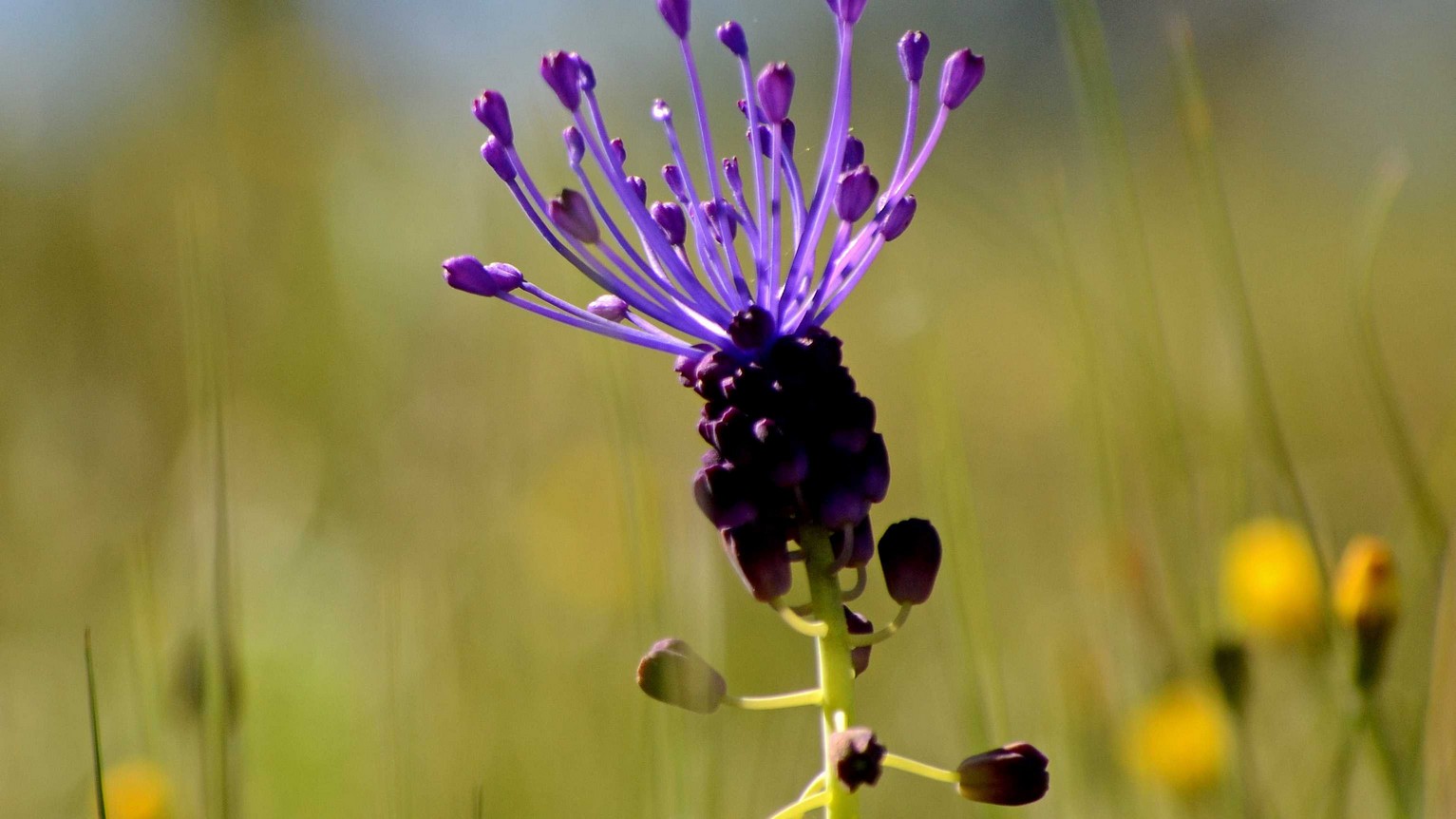 Muscari comosum, de nome comum Cebolinha-de-flor-azul/Jacinto-das-searas/Jacinto-de-tapete/Jacinto-paniculato, é uma planta que se desenvolve em terrenos cultivados, searas, olivais, vinhas, pinhais e bosques, com época de floração entre março e junho. No geral, esta espécie encontra-se distribuída pela Europa central e meridional, Norte de África e Ocidente da Ásia, verificando-se a sua presença também em Portugal, um pouco por todo o país.